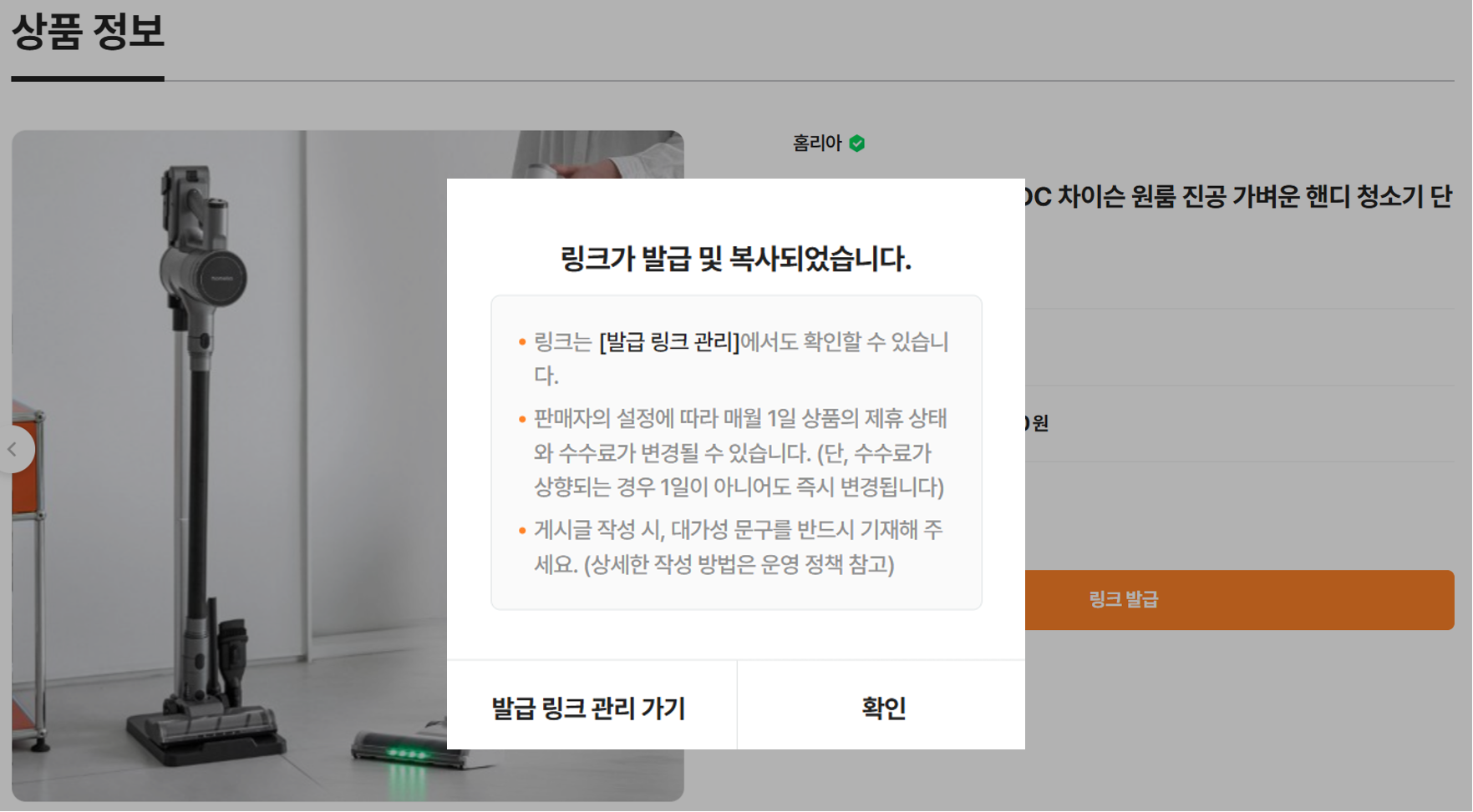 쇼핑 포스트를 작성하려는 상품의 브랜드 커넥트 링크 페이지로 바로 이동 할 수 있습니다.